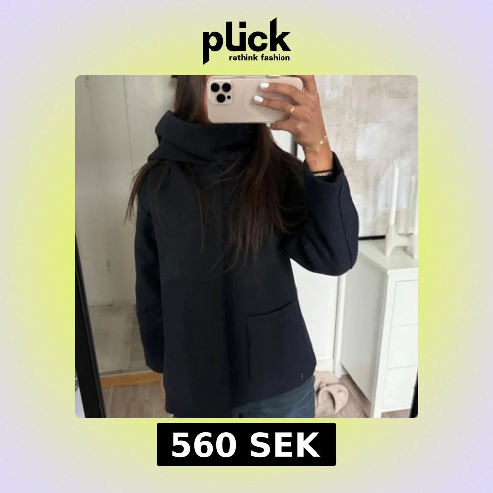 Söljer en supersnygg och stilren mörkblå kappa från Zara med oversized insydd halsduk och två stora knappar framtill. Den har rak passform, lång ärm och fickor🩷
