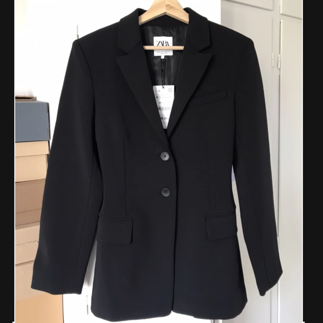 Figursydd blazer från Zara. Aldrig använd med prislappen kvar på. Köpt i vintras. Passar XS-S. Modellen är lätt oversize. Köpt för 699 från Zara.