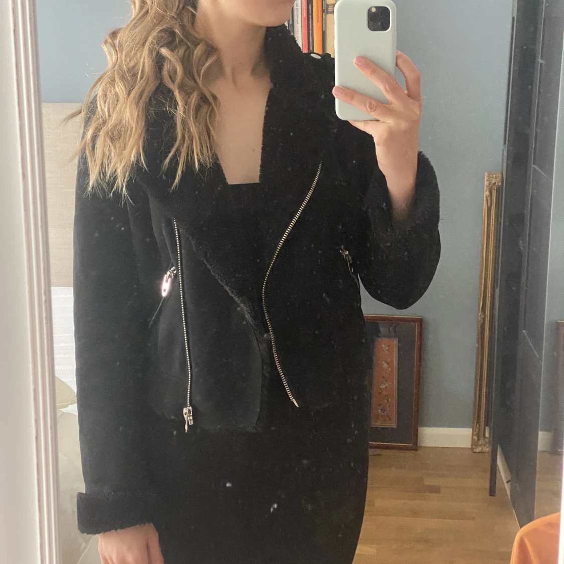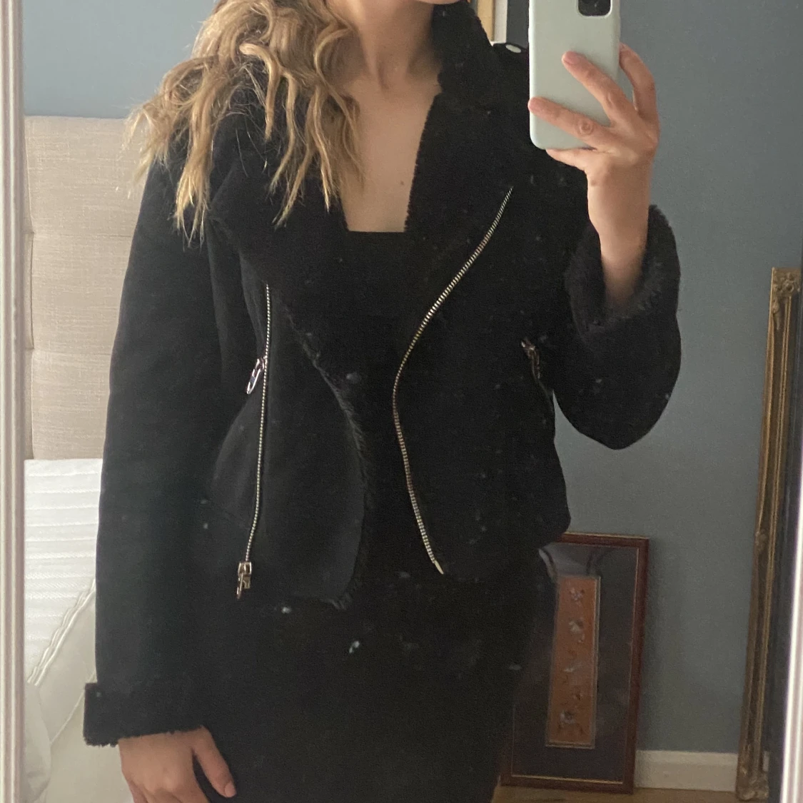 Jacka från zara med innerfoder. Utsida är mocka inspirerad! Storlek S. Jag är 168 cm lång