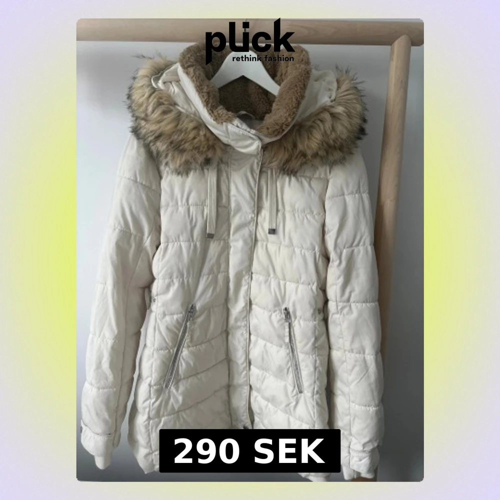 Snygg vit pufferjacka från Zara i storlek XL. Jackan har en mysig huva med beige fuskpäls och dragkedjor på fickorna. Perfekt för kalla dagar med sin quiltade design och fluffiga känsla. Stängs med dragkedja framtill och har långa ärmar.