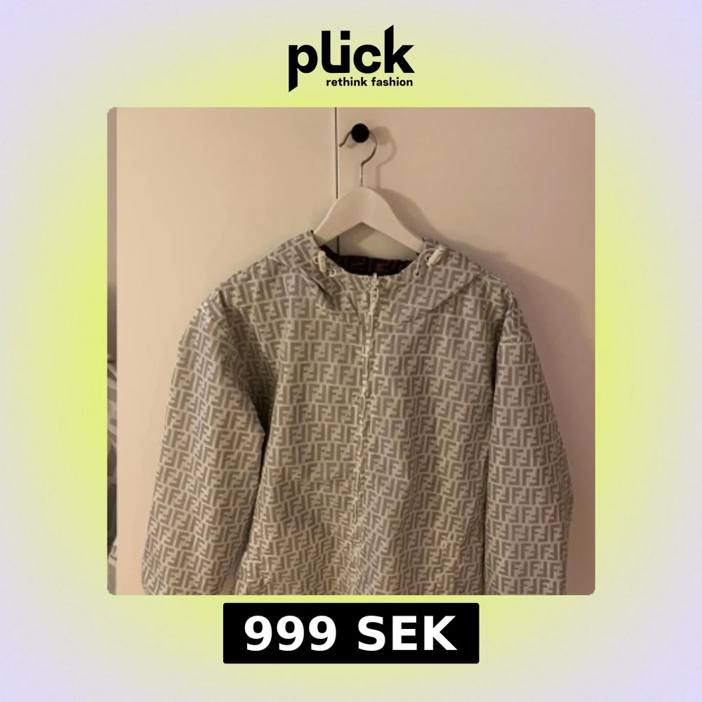 Säljer en snygg jacka, med mönster i grått och vitt. Jackan har huva med snörning, dragkedja framtill.. Perfekt för dig som gillar streetwear och vill sticka ut med designerplagg. Det går även att vända jackan ur och in så jackan blir brun.