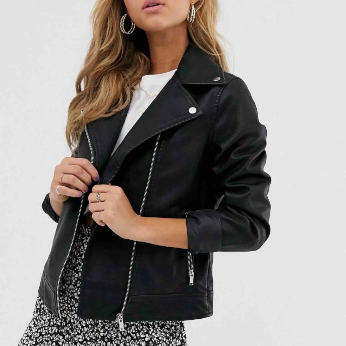 En skinnjacka från ASOS, köptes förra hösten!!☺️ Har använts ett fåtal gånger så i bra skick. Den är i 38 men skulle nog säga att den är en stor 36/en liten 38🥰 Säljer för att jag använder en annan😇300kr + frakt, pris kan diskuteras vid snabb affär
