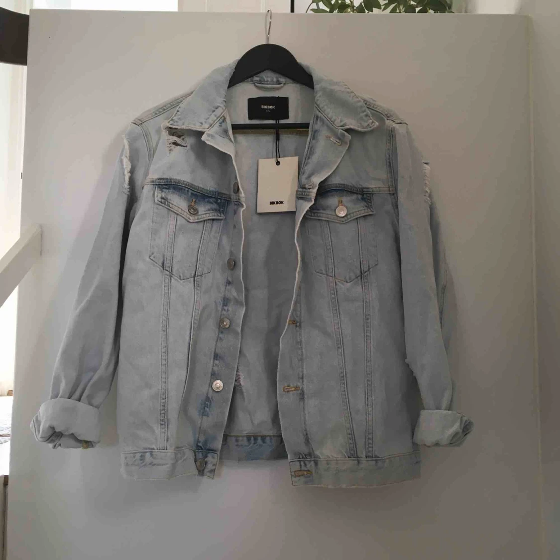 Oversized jeansjacka med slitningar från bikbok. Nypris:600, aldrig använd