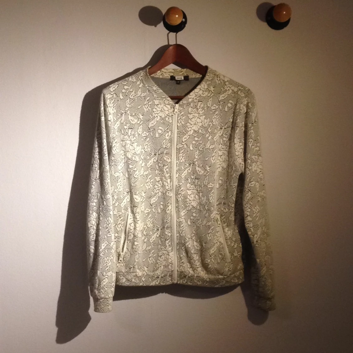 Tunn vårjacka / zip-tröja från bikbok i svartvitt blom-mönster. Möts upp i Stockholm eller hämtas av köparen. Swish finns!