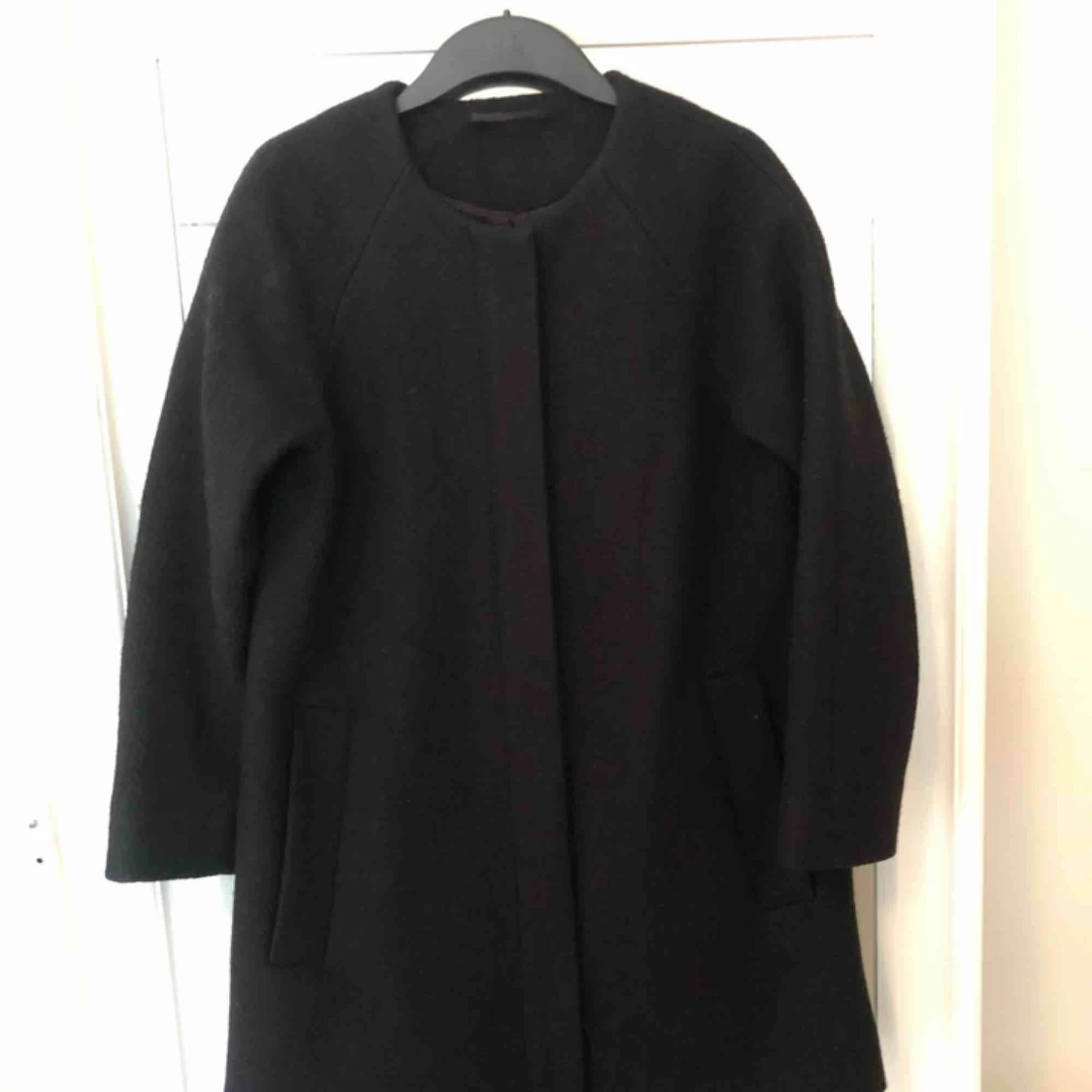 Säljer en A-linjeformad, svart ullkappa från COS. Använd max 10 gånger och inköpt för ca 2000 kr förra säsongen! Möts upp i Stockholm eller så står köparen för frakten :)