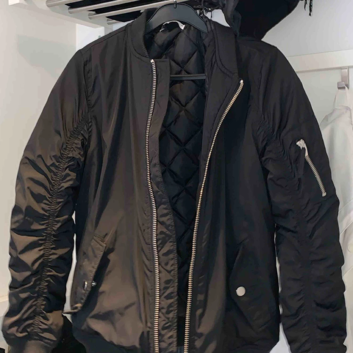 En svart bomberjacka från Gina tricot, har används fåtal gånger den är precis som ny!! På bild nr 2 ser jackan grå ut men de var endast pågrund av ljuset! Storlek 34 men skulle säga att den är som en 36!! Vid intresse skriv, jag står för frakten💖💖