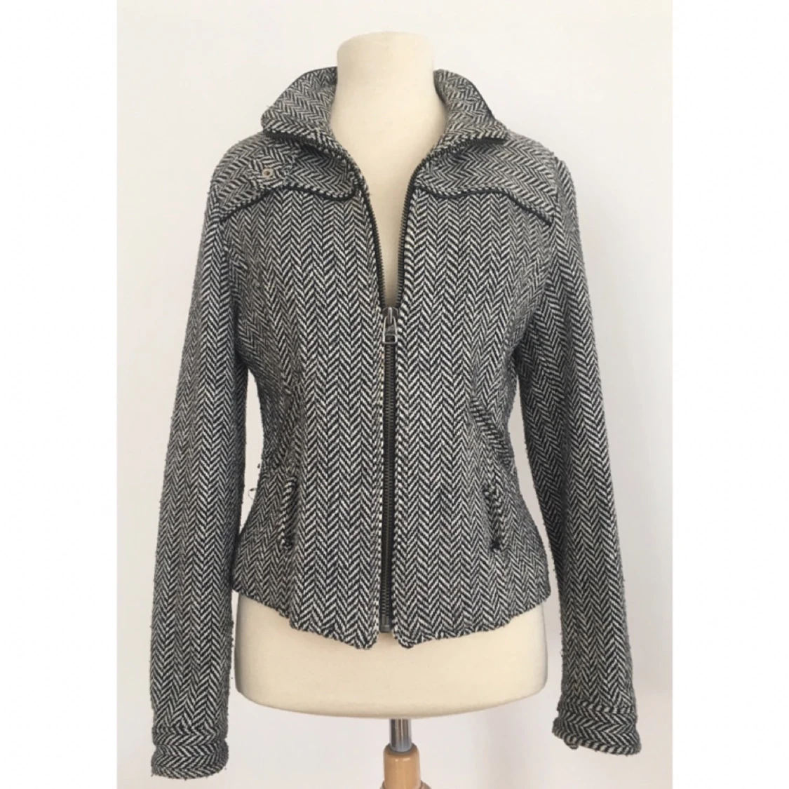 Välsittande jacka med zigzag-mönster. Märke: TRF Storlek: L, men mer som en M. Skick: Gott skick. Sparsamt använd. Pris: 150 kronor Frakt: Betalas av köparen.