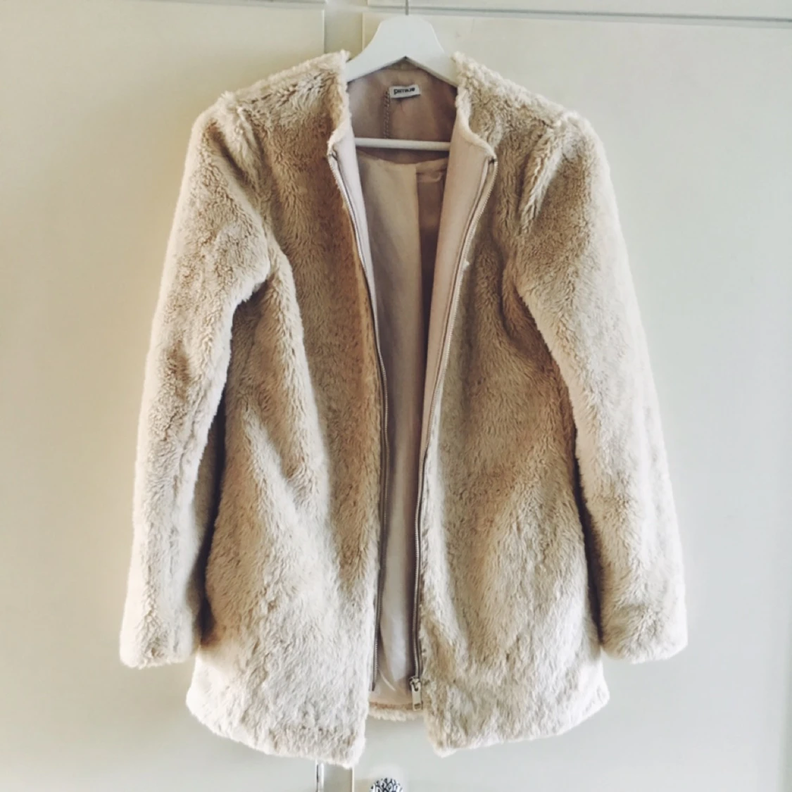 Beige fuskpälsjacka, säljes pga att den är lite för stor för mig (jag är en XS vanligtvis). Frakt kostar 50kr.🌸