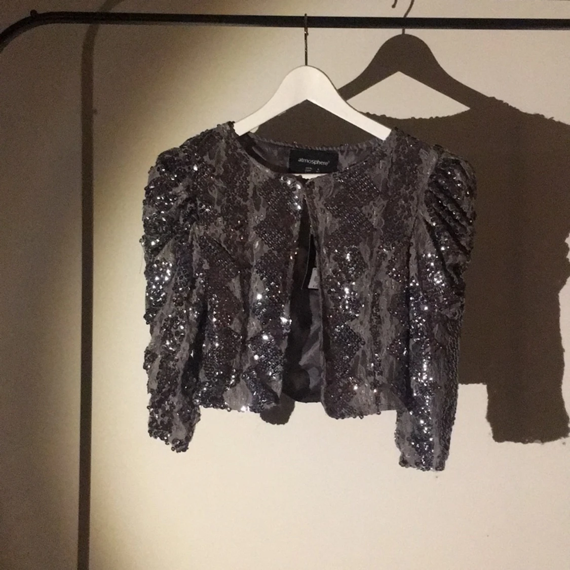 Snygg jacka/kavaj i paljett, köpt i London! Säljes billigt, 30kr+frakt⭐️⭐️⭐️