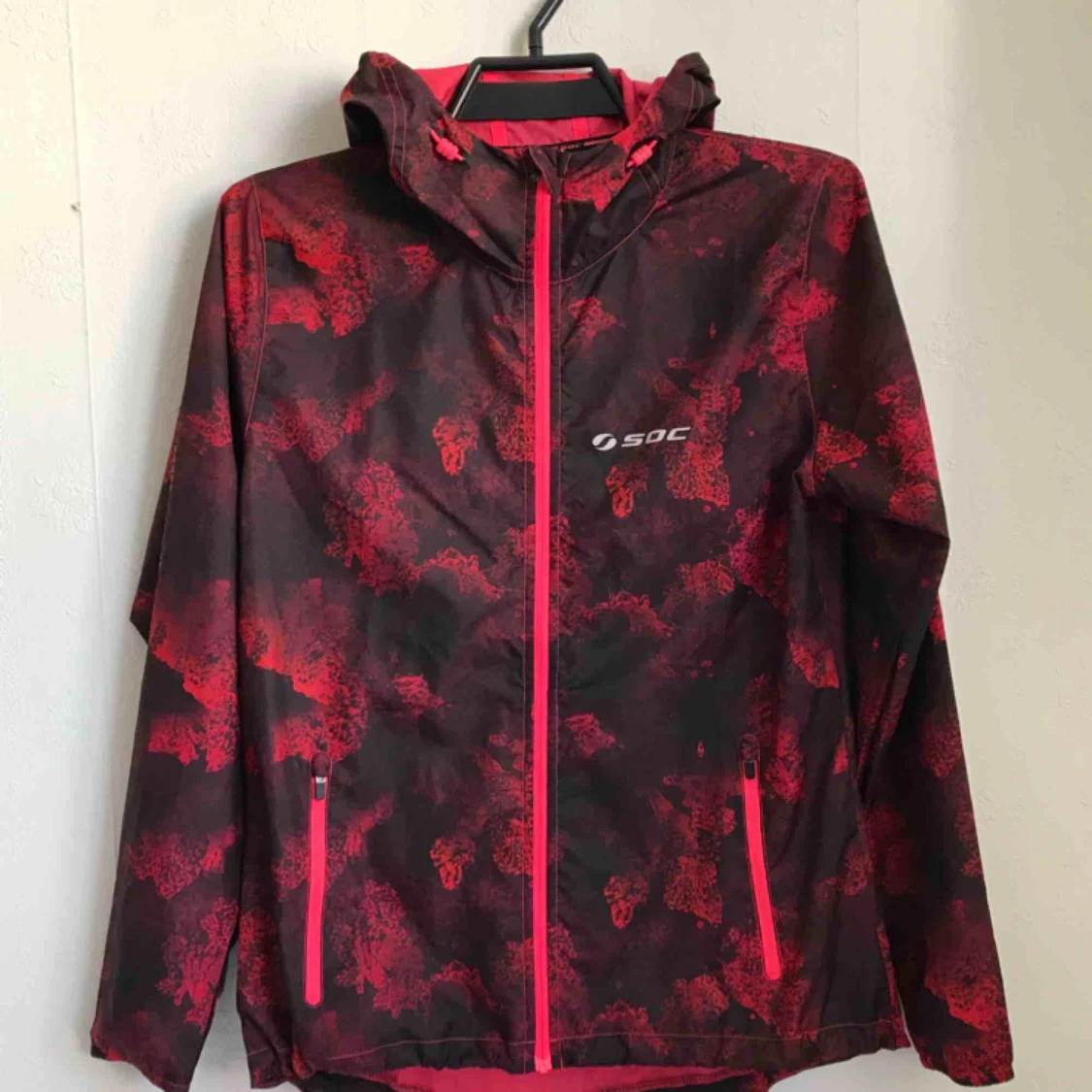 Jacka från SOC för löpning eller annan träning med fina färger och mönster. Prislappen sitter kvar. Storlek 38.