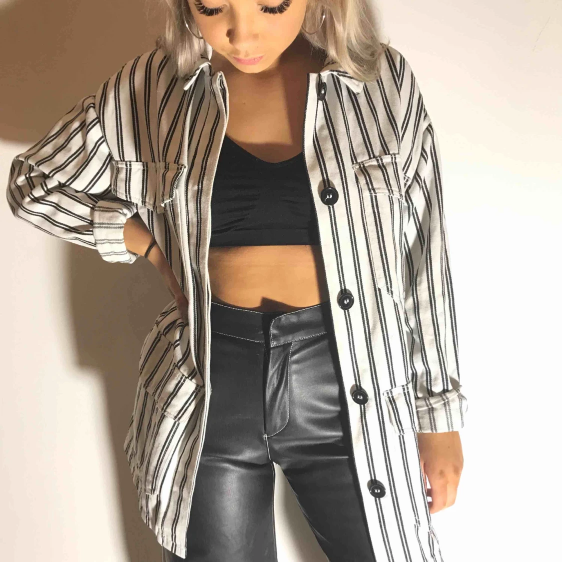 Vit och svart randig jacka i storlek XS ifrån Monki. Nästan inte använd.