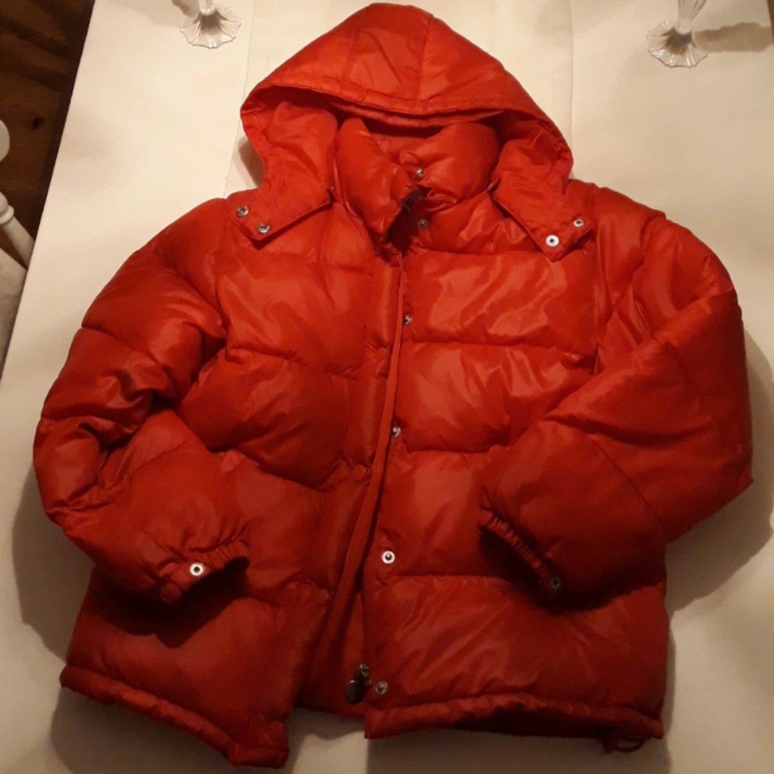 Röd vinterjacka, stl. 152. Hämtas i Mehedeby eller kan tas till Tierp. Bra skick!