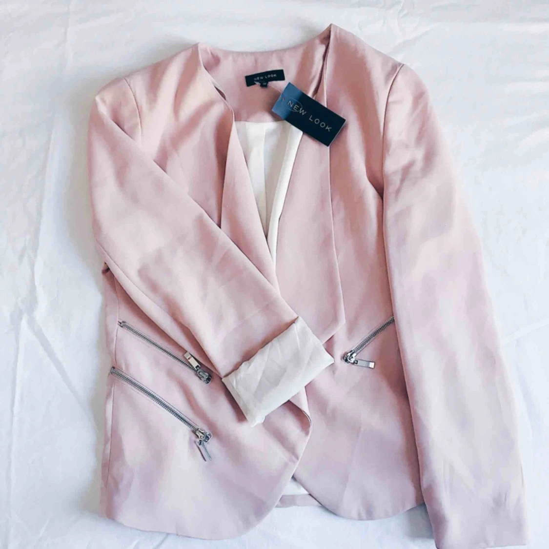Oanvänd rosa blazer från New look! Dekorativa kedjor i silver och fina feminina beslag.