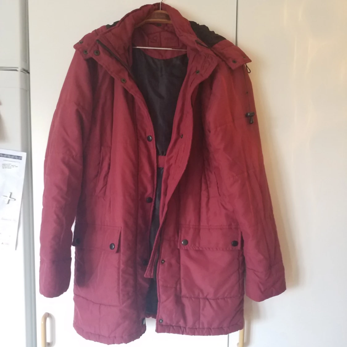 Varm och skön längre jacka, storlek 38 men funkar på mindre och större beroende på hur man vill ha den