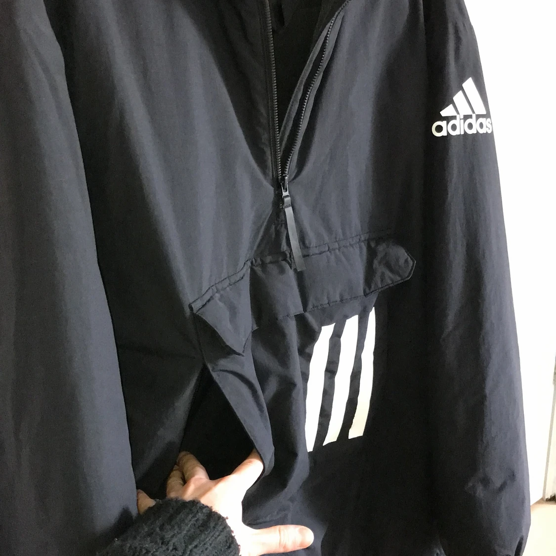 Snygg och bekväm Adidas jacka i lite oversize passform. Storleken är S. Med rymlig ficka på magen och med luva. Hör av dig vid frågor!