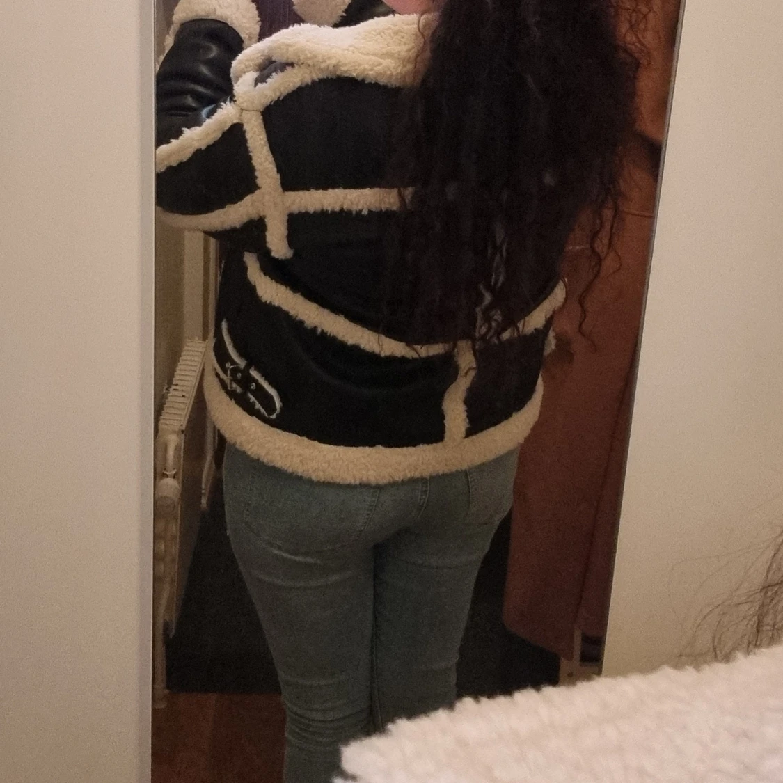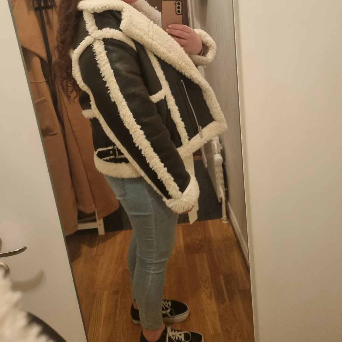 Snygg jacka i läderimitation samt med teddy invändigt och i detaljer. Använd 3 gånger vid torrt väder. Säljes just pga att jag inte använder den så ofta. Kan skickas. Köpare betalar frakten. Säljs ny i butik för 899 kronor.