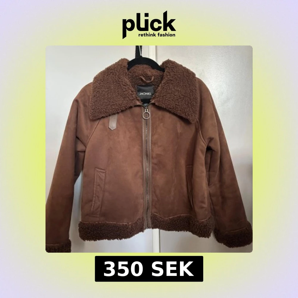 Denna jacka från monki har jag nästan aldrig använt eftersom jag tycker den faller på ett awkward ställe, vill påpeka att det är ingen riktig mocka eller päls. Det är storlek M men är mer åt det korta hållet! Skicka gärna frågor och skickar mer bilder om det behövs.