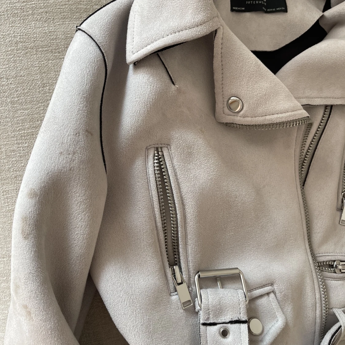 Storlek XS, passar även en S. Finns några fläckar på armen som går att tvätta bort.