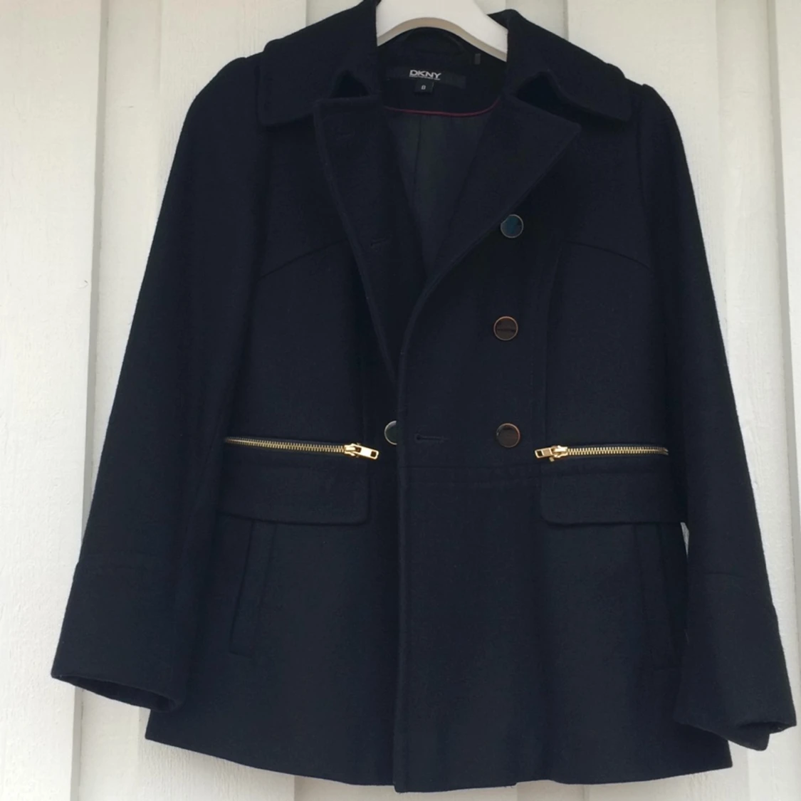 Höst-vinterjacka , svart med gulddetaljer, Äkta DKNY. Köpt i USA.