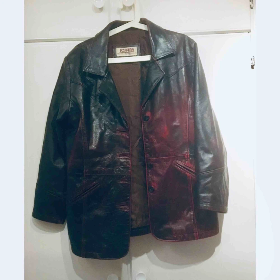 Retro jacka från jofama - brun med oxblodsfärgade detaljer. Passar M på herr och L på dam 105kr på frakt!