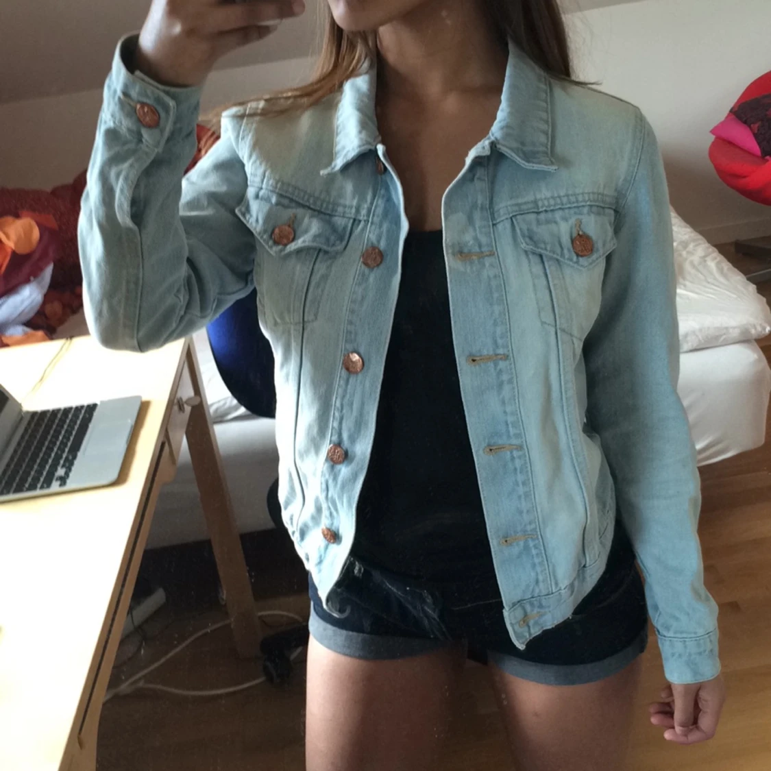 Ljus jeansjacka i nytt skick. Stl xs/s. Perfekt till sommarkvällarna.