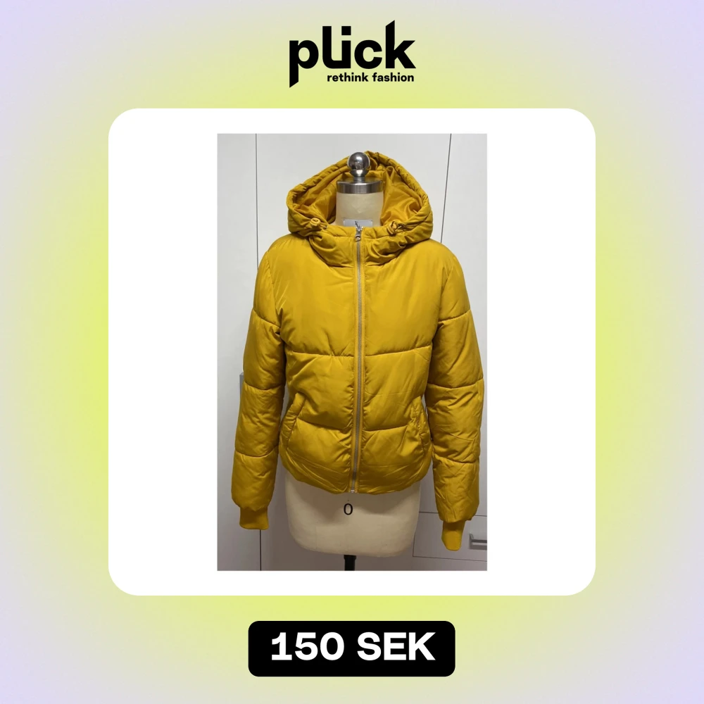 Säljer en superfin gul pufferjacka med huva. Den har en dragkedja framtill och är perfekt för kyliga dagar. Jackan är i mycket bra skick och har långa ärmar. Den är både snygg och praktisk för höst och vinter.