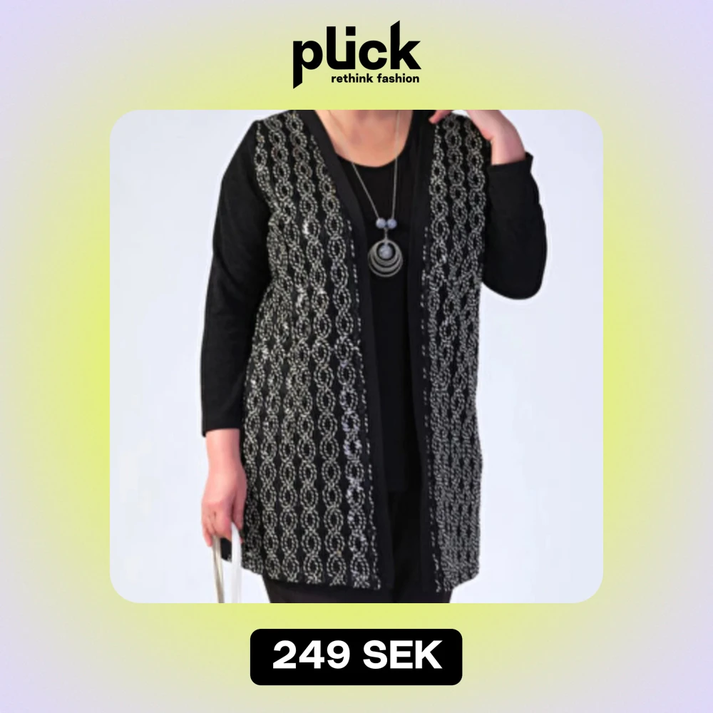 Snygg svart och grå väst med ett unikt mönster. Perfekt för att lägga till lite stil till din outfit. Västen har en öppen design och är i normal passform. Passar bra för höst och vinter.