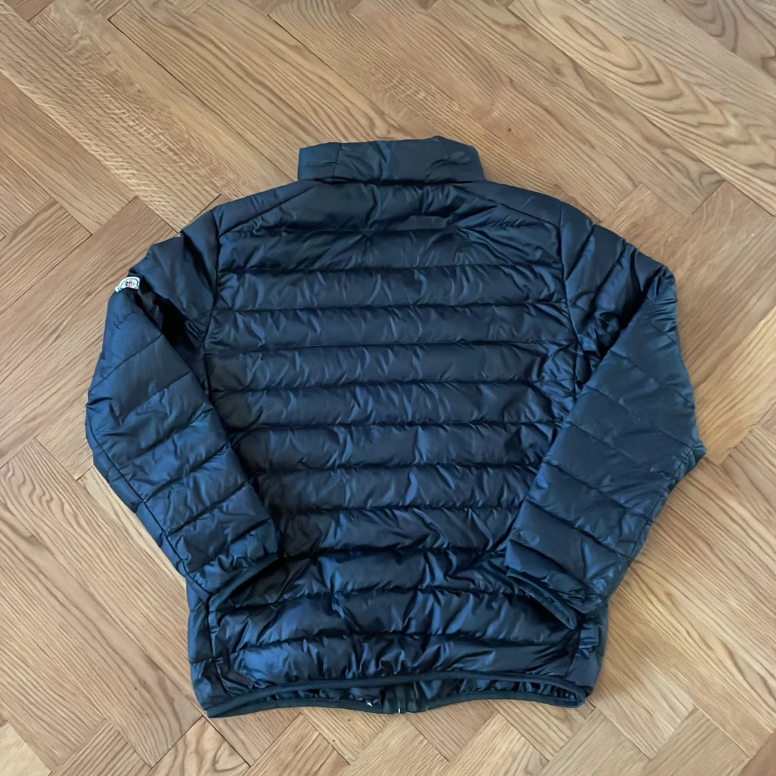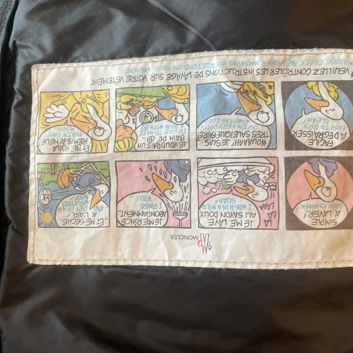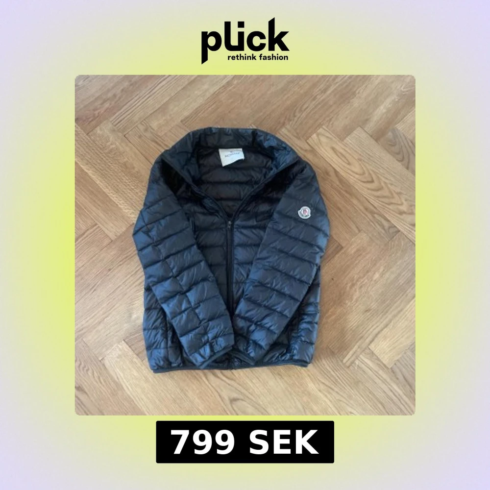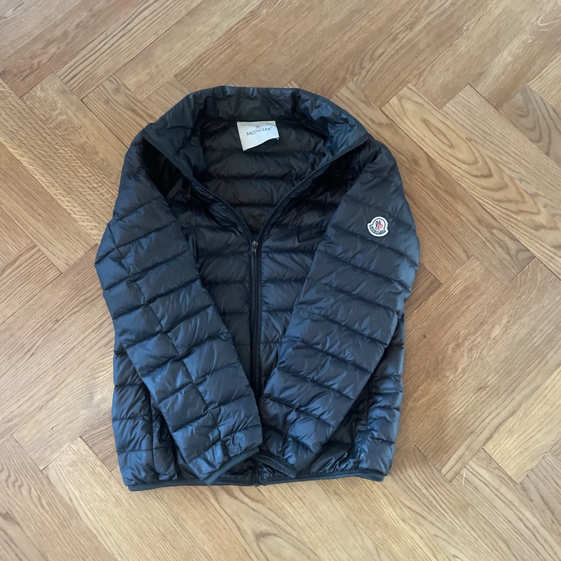Svart dunjacka från Moncler med quiltad design och klassisk logga på ärmen. Jackan har dragkedja framtill . Insidan har en cool serietidningsetikett. Perfekt för dig som vill ha en snygg och lätt jacka med bra kvalitet. Pris kan diskuteras
