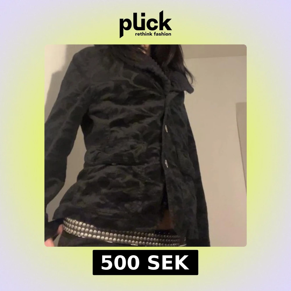 Säljer en svart kavaj med coolt mönster och bred ribbad krage. Jackan har knappar framtill och två fickor. Jätte gullig funkar för S även M