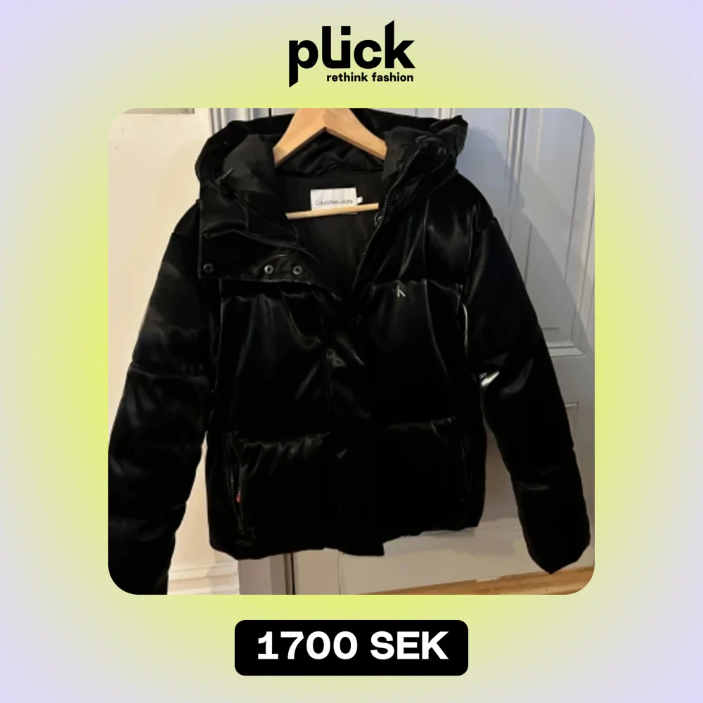 Jätte fin jacka från märket Calvin Klein Jeans. Den är svart glansig och har inga skador alls, köpt i vintras för 2 300kr.