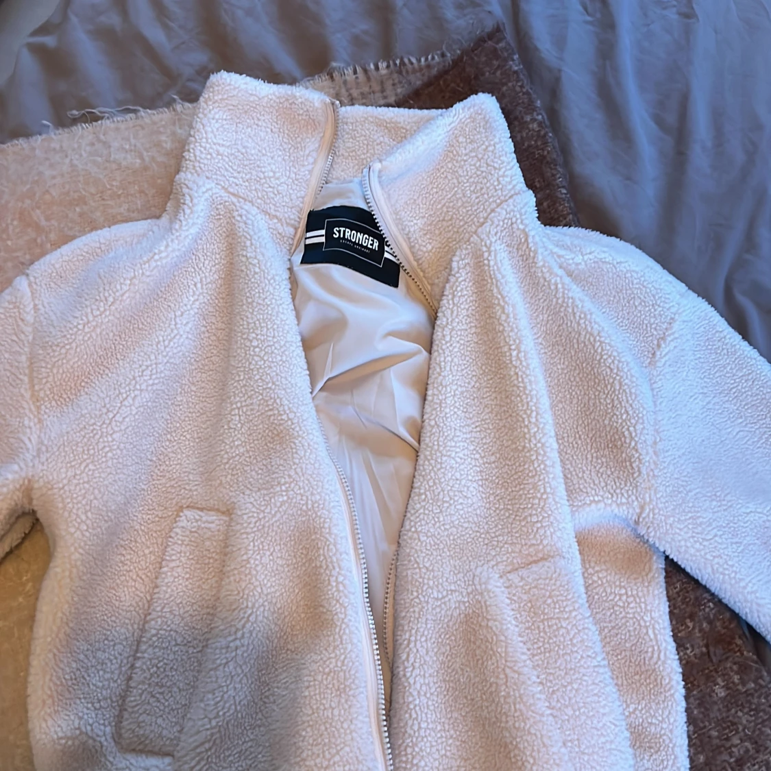 Denhär jackan är jättemysig och jättefin, men jag använder den inte så jag säljer den, den är ifrån stronger och ser ut som ny