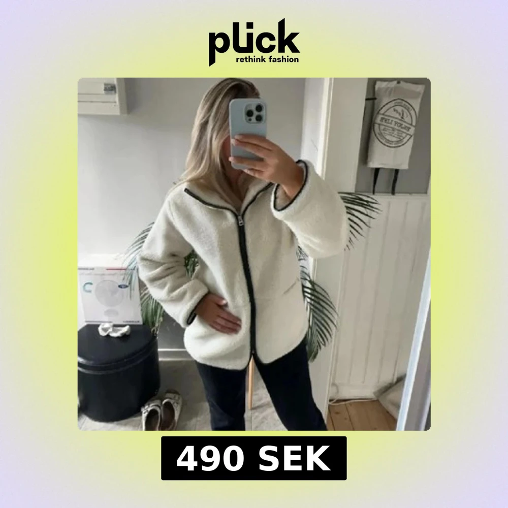 (Lånade bilder från tjejen jag köpte av). Mysig vit teddyjacka med svart dragkedja och långa ärmar. Perfekt nu till våren. Säljer den då jag har en liknande jacka❣️