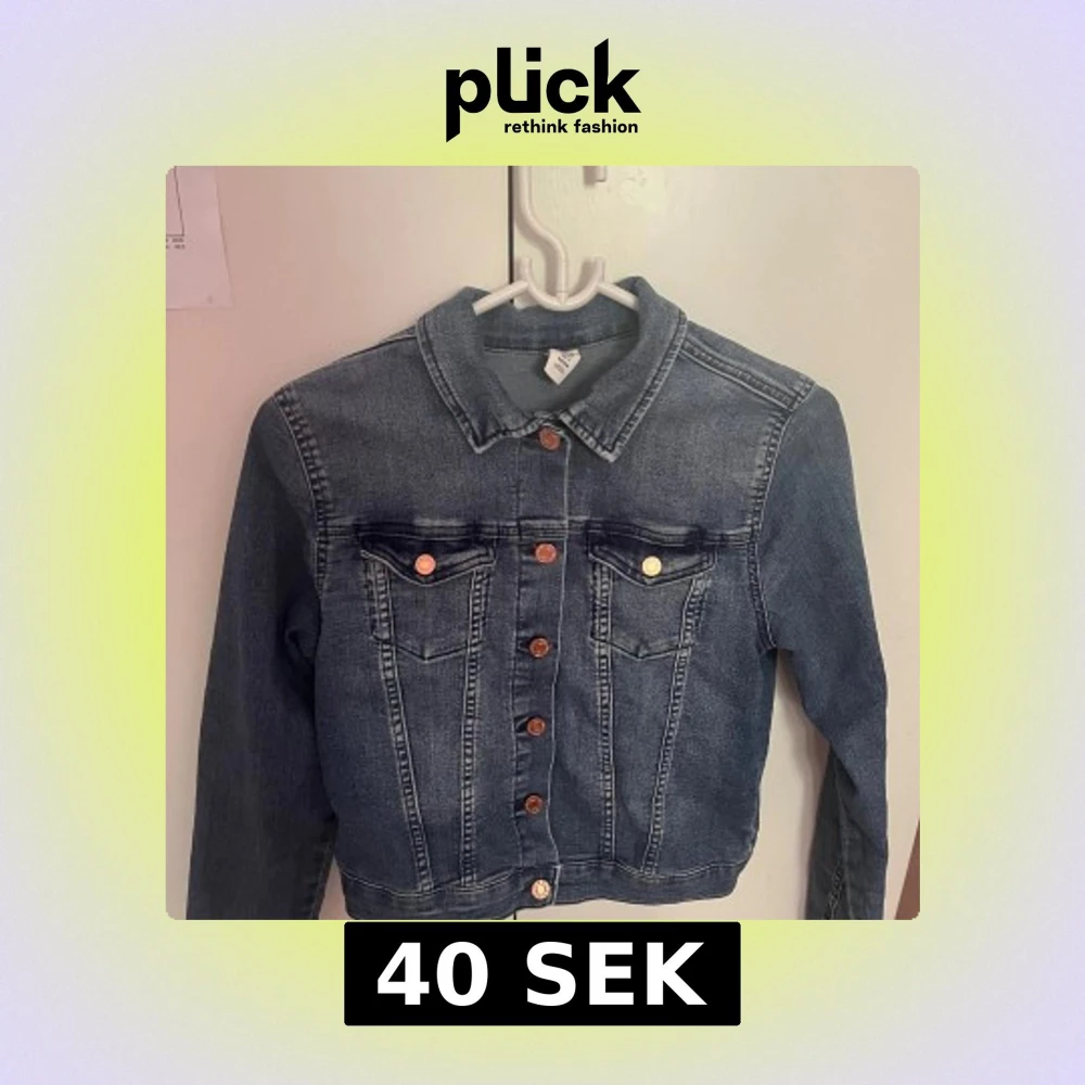 Snygg blå jeansjacka från H&M med klassisk krage, kopparfärgade knappar och två bröstfickor med lock. Jackan har en rak passform och är tillverkad i stretchig denimtyg. Perfekt att slänga över en huvtröja eller t-shirt för en cool eller casual look.