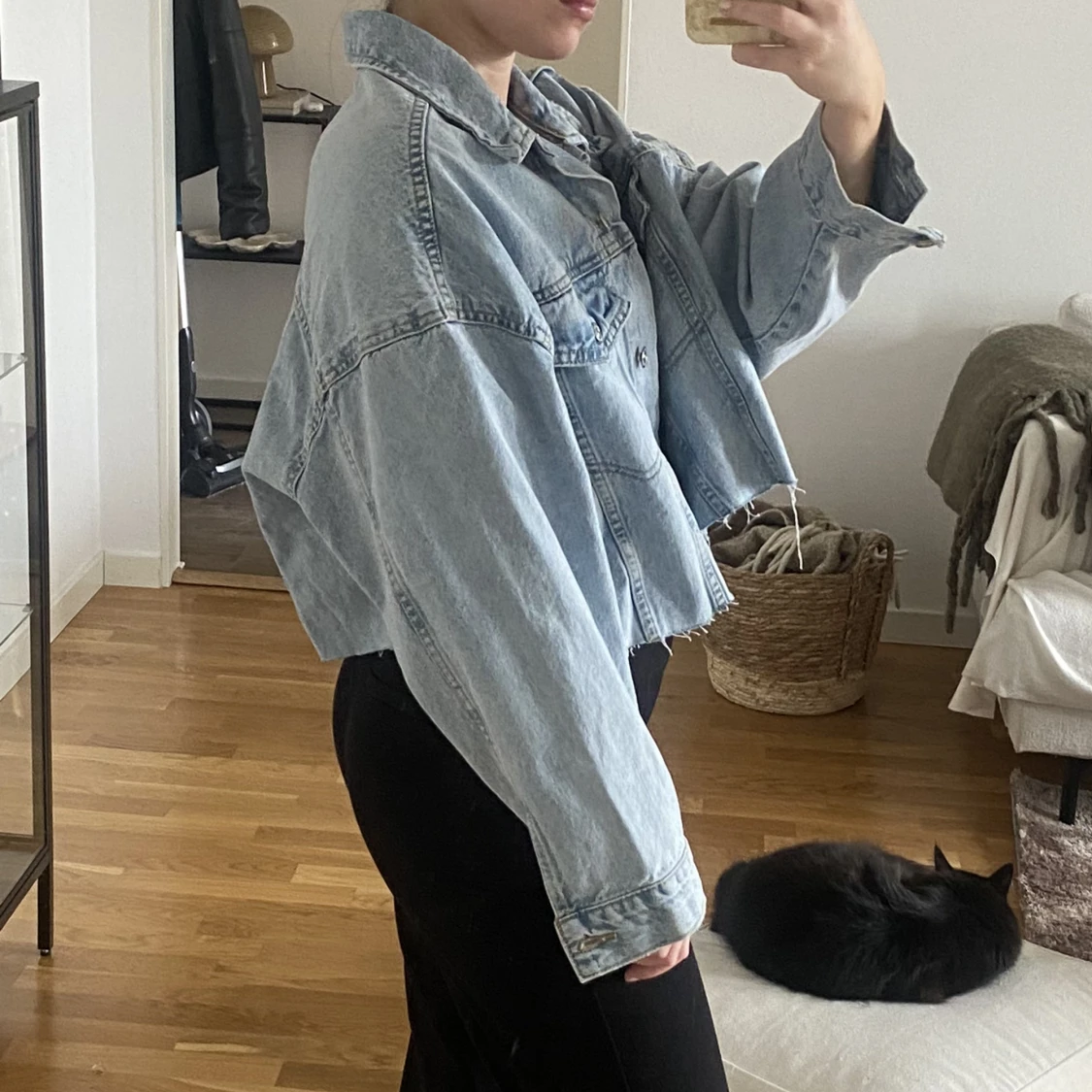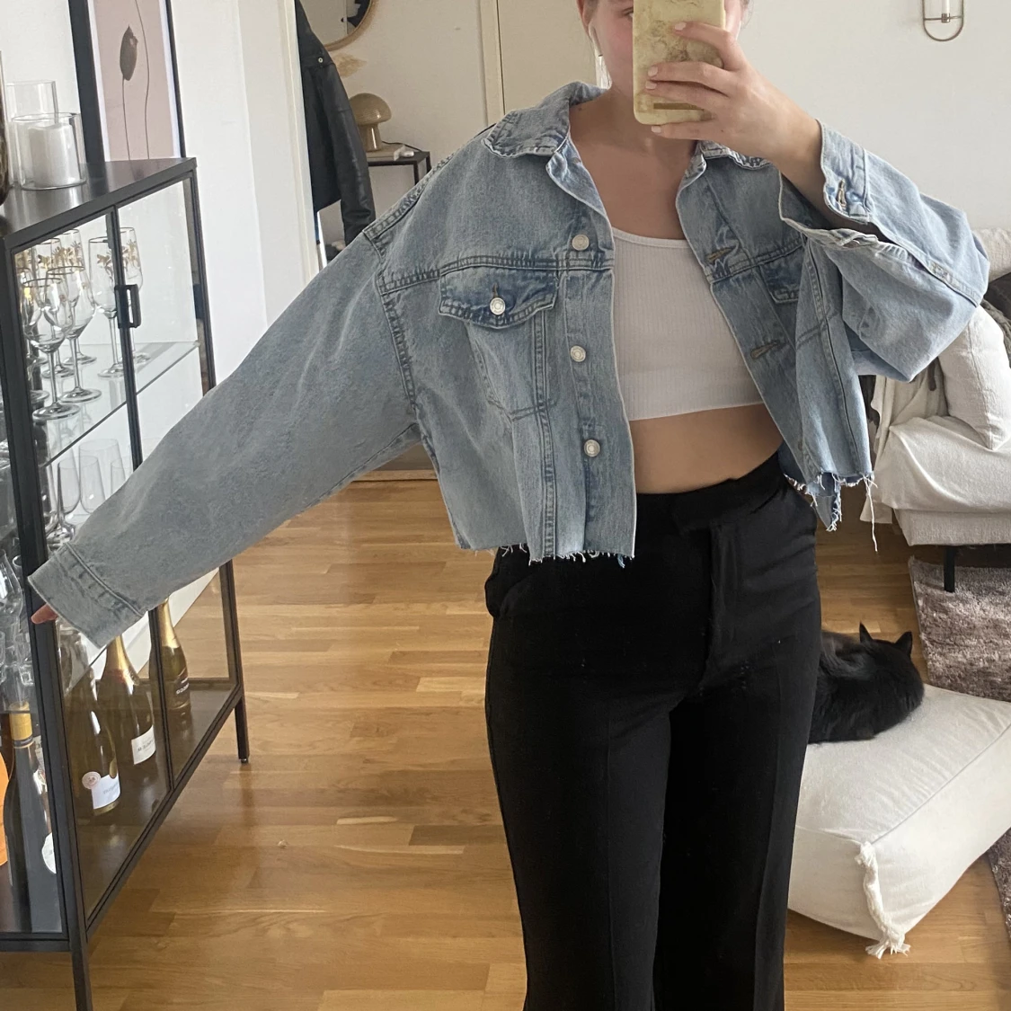 Oversized croppad ljus jeansjacka från ginatricot. Storlek S och passar även M. Aldrig använd 💙💙💙