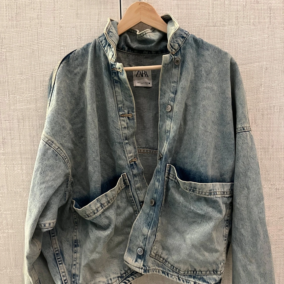 Säljer denna super snygga over sizead jeans jackan ifrån zara.