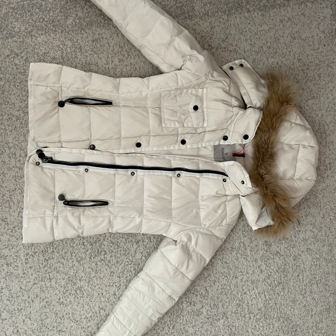Säljer min fina moncler jacka. Jackan är i väldigt bra skick dock med ett hål vid ärmhålan (se bild 3) men det ska inte vara något stort besvär. Jackan är äkta (qr kod samt serielapp) Pris kan diskuteras. Köp direkt för 1600. För fler bilder skriv.