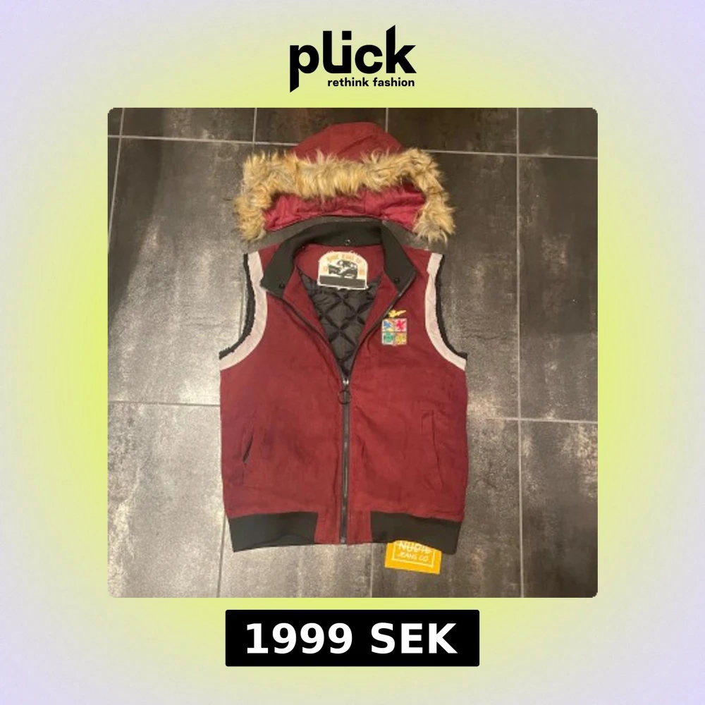 Tvärfet Mocka väst från Nudie med avtagbar pälshuva. Sjukt sällsynt modell, aldrig sett liknande. Osäker på nypris men skulle gissa runt 3000kr. Storlek L men passar bättre M. Nyskick, endast använd 2-3 gånger. Byten kan vara intressant och priset är självklart diskuterbart! 🫰🫰 (OBS - Var cardigan tidigare men klippte själv bort ärmarna)