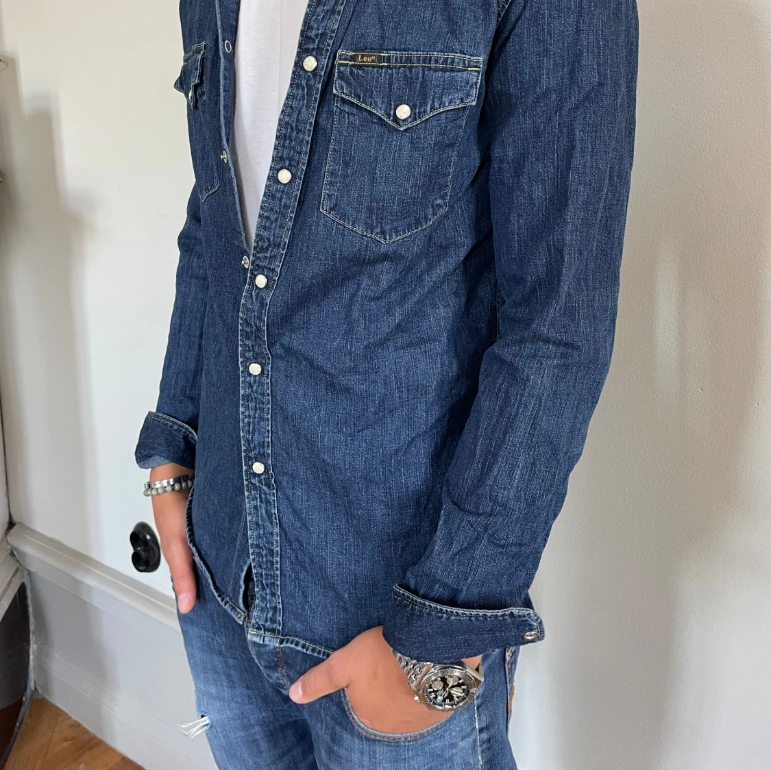 Jeans skjorta från lee! Skick: 10/10 Strl: M Modell: 182, ca 70kg!