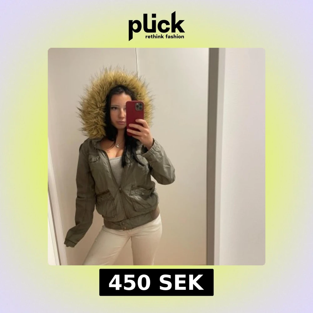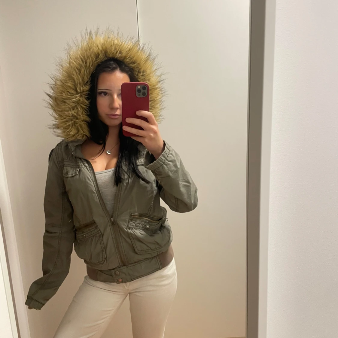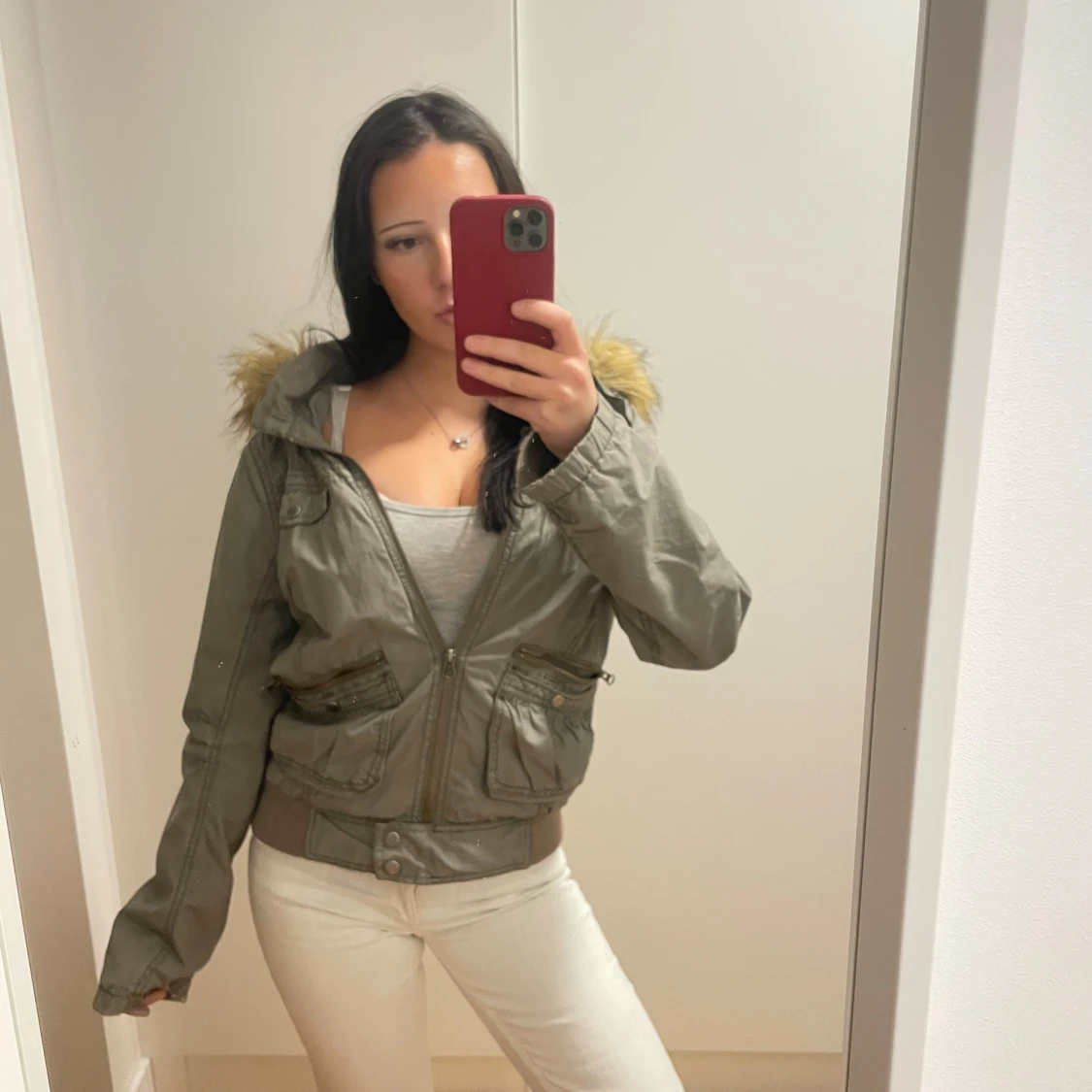 Skitsnygg grön vintage jacka med päls på som går att ta av ❤️