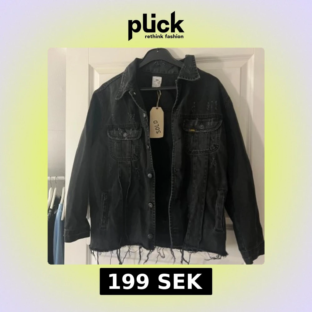Cool svart jeansjacka med slitna detaljer och tryck på baksidan'. Jackan är från eget UF företag så trycket är eget. Storlek S/M. Aldrig använd. Bra skick. Säljer för 199kr + frakt eller lägg ett prisförslag😍