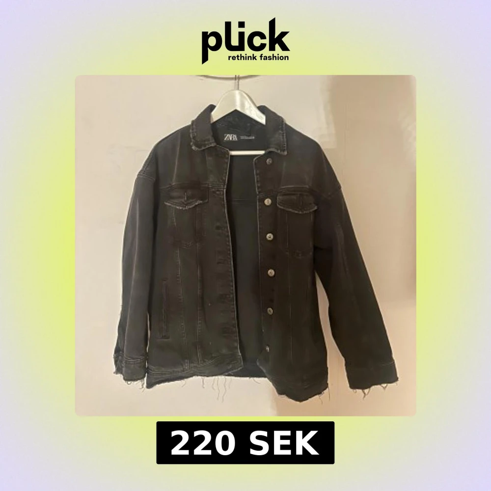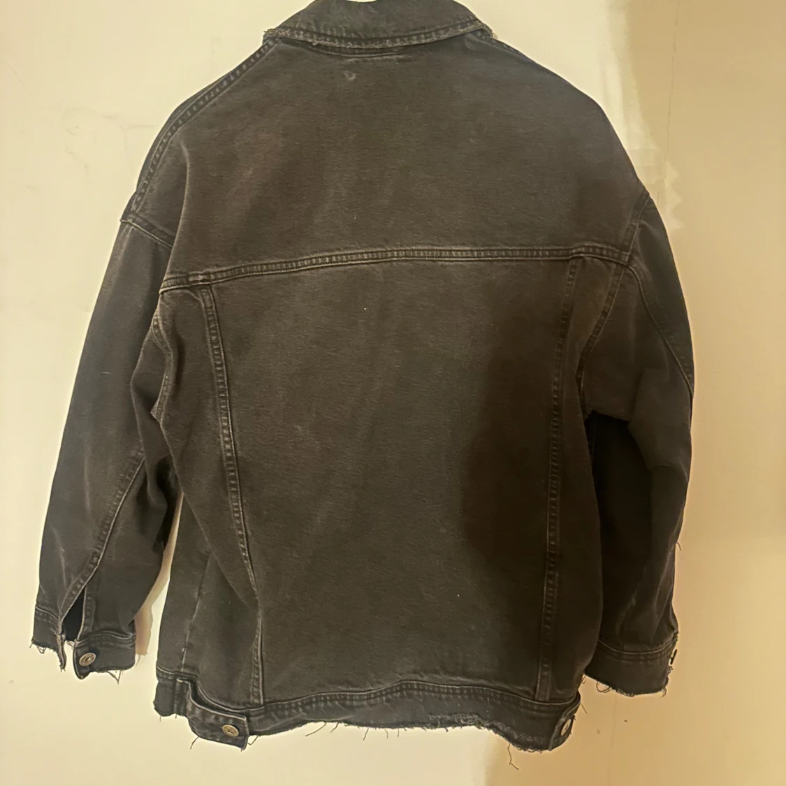 Svart/mörk grå jeansjacka från Zara i oversized modell med slitna kanter och klassisk krage. Jackan har knappar framtill, två bröstfickor och långa ärmar💕💕