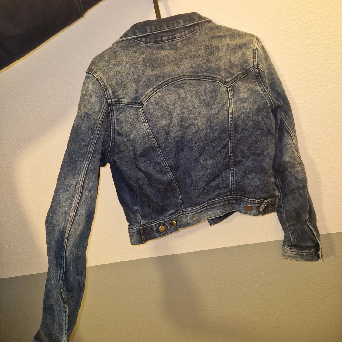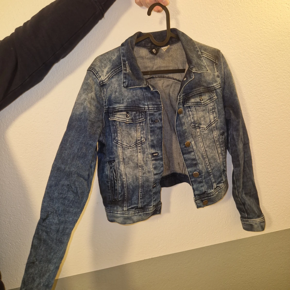 Snygg jeansjacka från H&M i tvättad blå denim. Klassisk modell med bröstfickor, metallknappar och långa ärmar. Perfekt för dig som vill ha en cool och tidlös look.