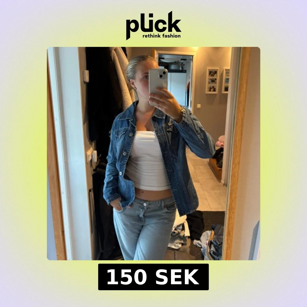 Snygg jeansjacka i mörkblå. Skulle tippa på storlek 36/38 ungefär