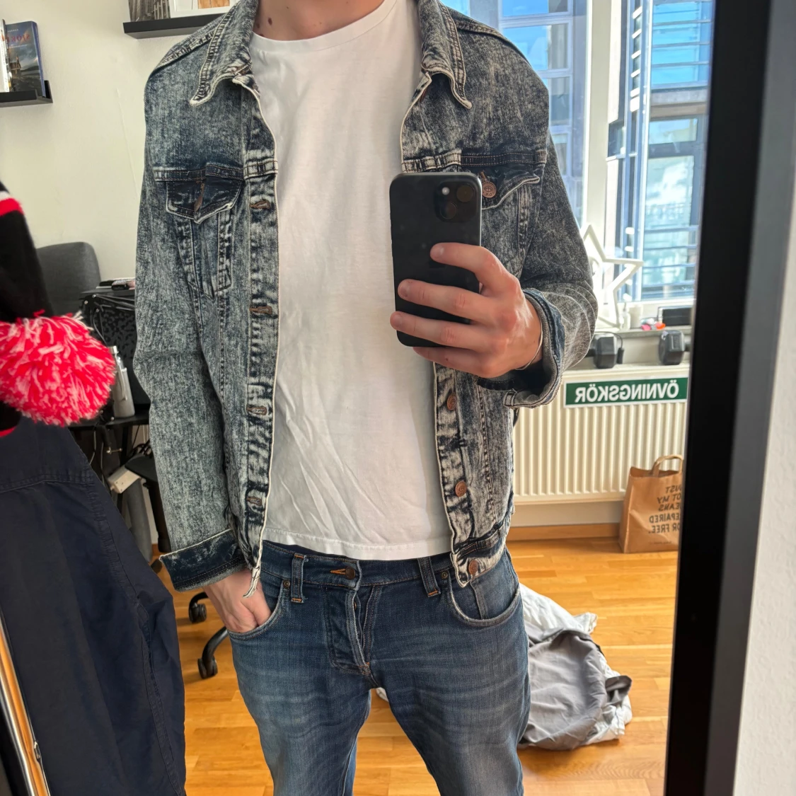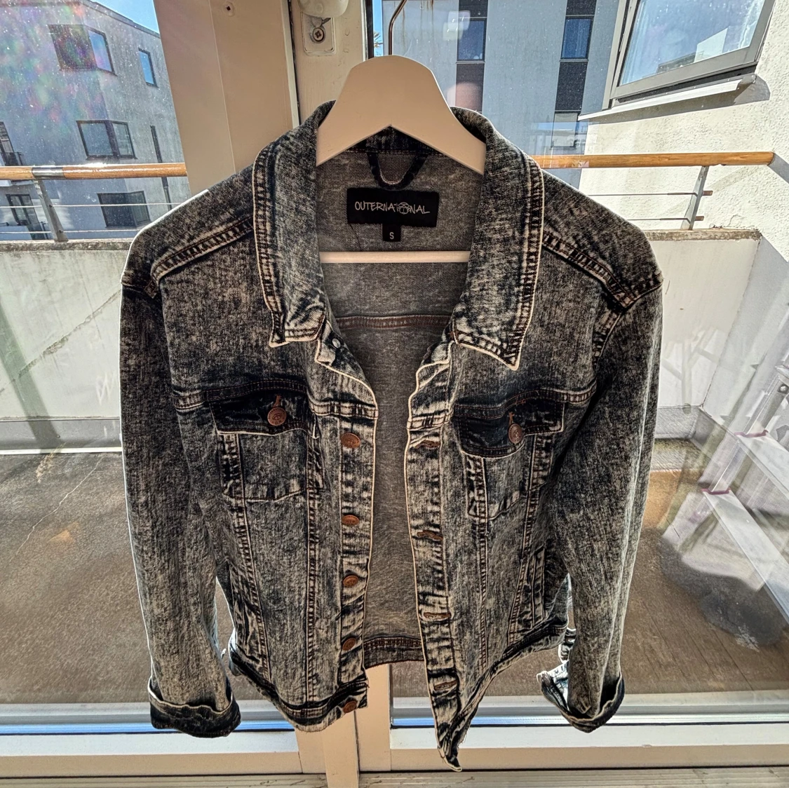 Snygg acid wash jeansjacka från Outerational i svart och grått. Klassisk modell med bröstfickor, knappar framtill och krage. Jackan har en cool tvättad look och passar perfekt till jeans för en avslappnad stil. Använd fåtal gånger!