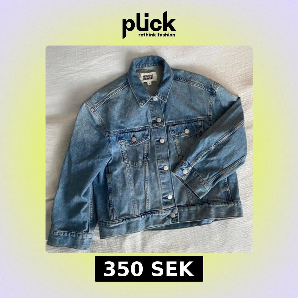 Snygg blå jeansjacka från Weekday i storlek XS. Lite oversized design med knappar framtill och två bröstfickor.