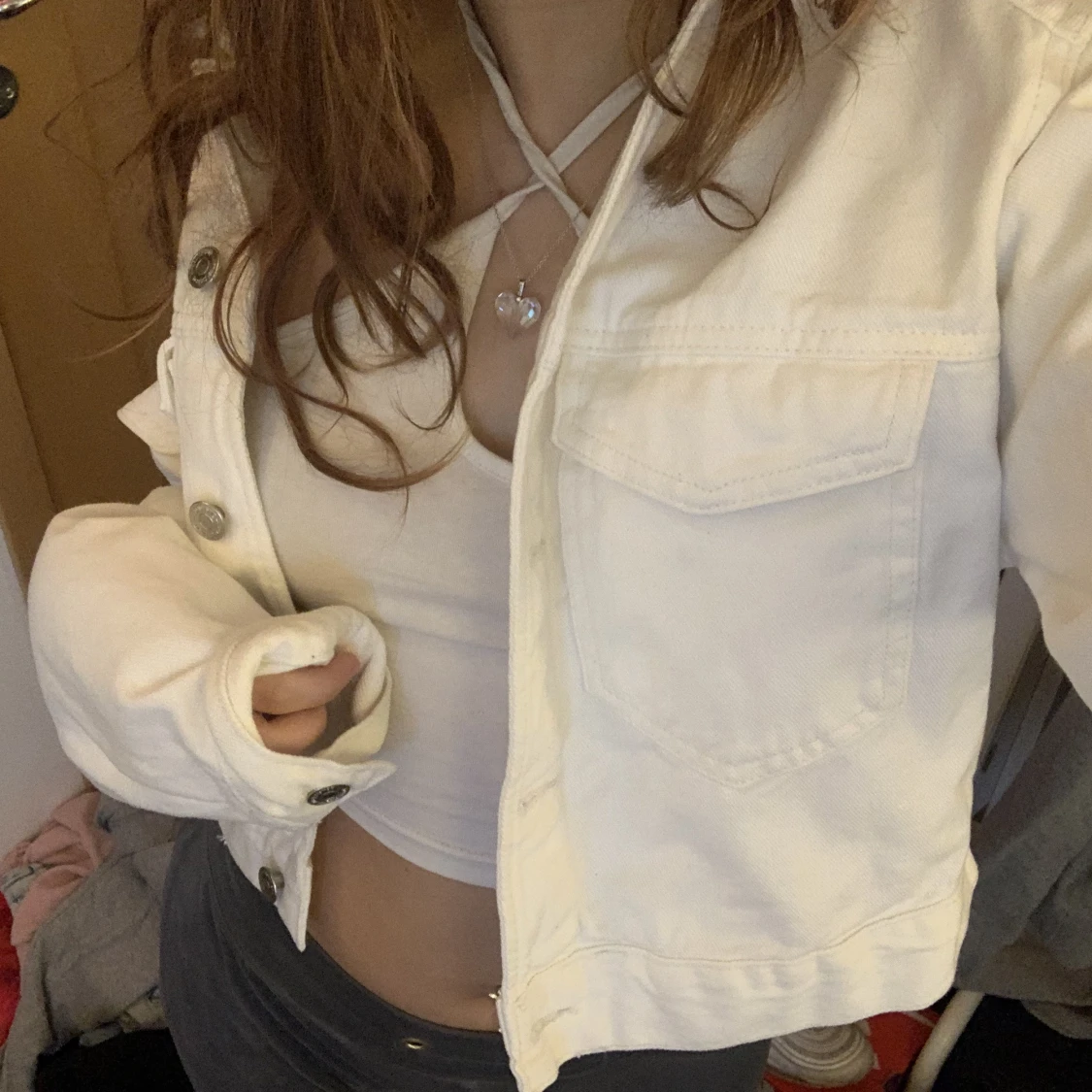 Vit jeans jacka från ginatricot helt oanvänd och prislappen sitter kvar :) ordinarie pris 400kr, ganska säker att den inte finns att köpa längre! Storlek XS ❤️ kan skicka fler bilder i dm!