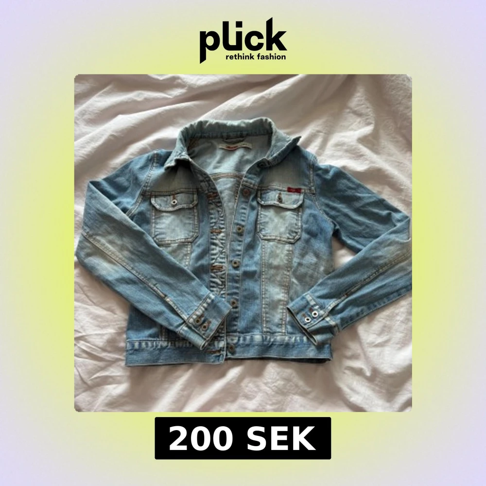 Snygg ljusblå jeansjacka från ONLY Jeans med klassisk passform. Den är stl L men sitter mer som en M. Liten blekt fläck på ena axeln, se bild. Pris kan diskuteras!