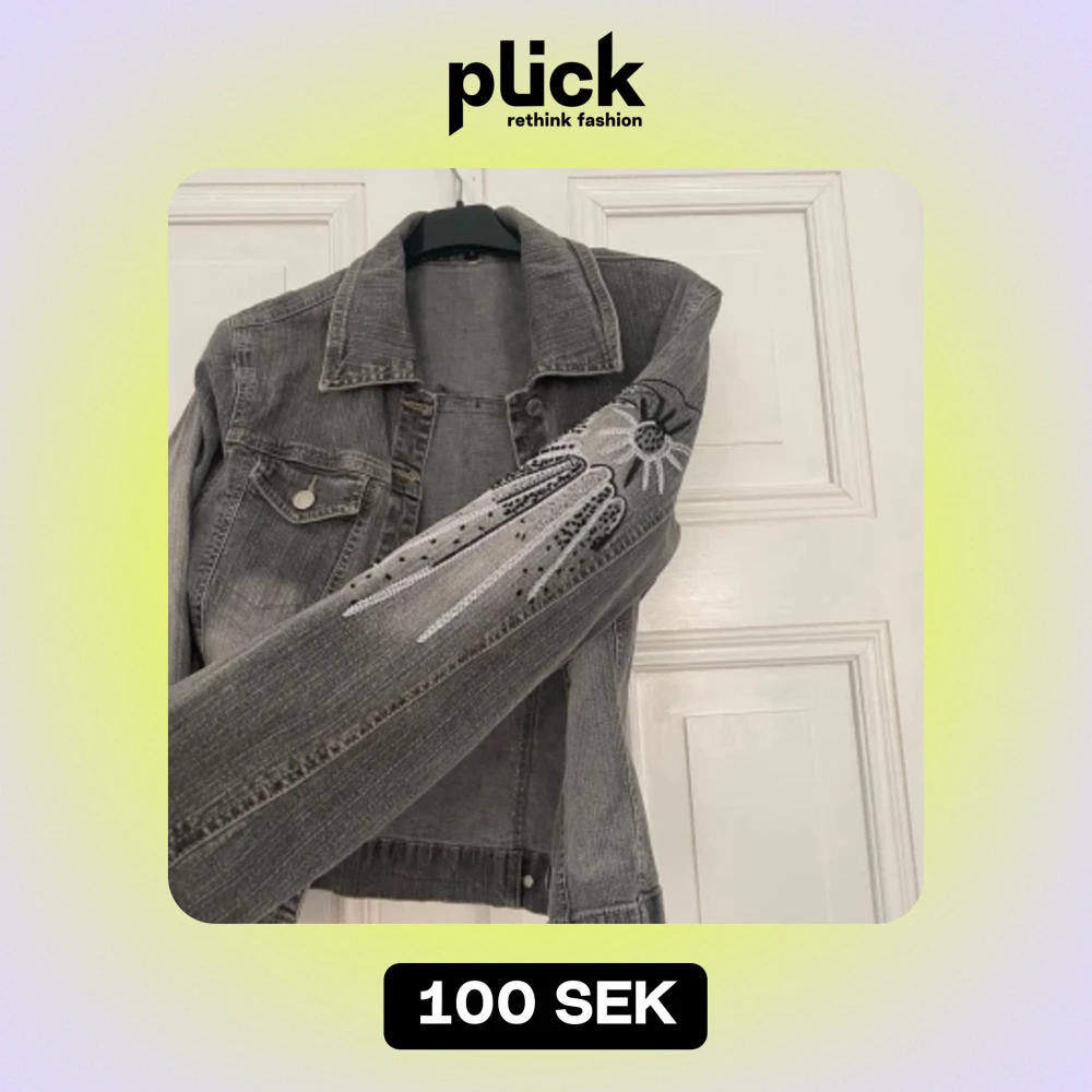 Grå jeansjacka med snygga stenar och glitter på ärmen!! Superfin & jättebra skick
