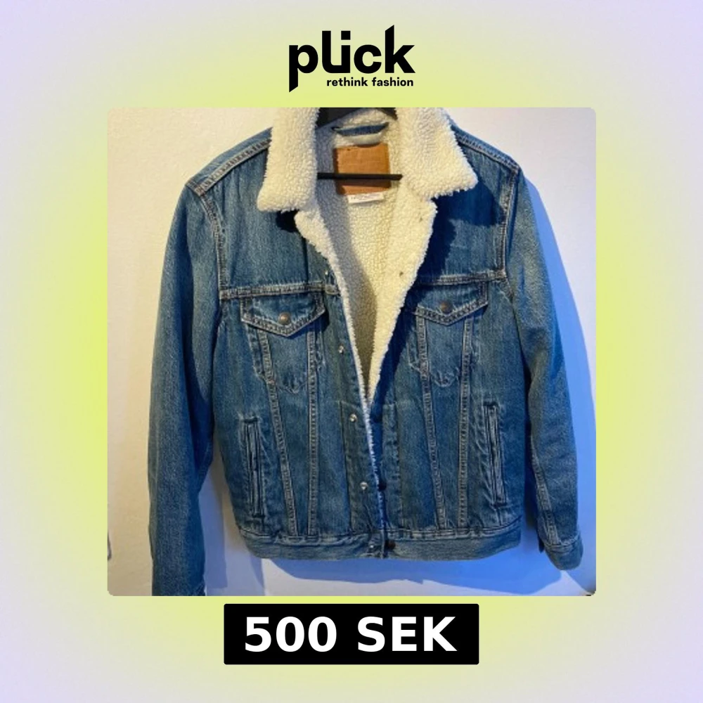 Klassisk blå jeansjacka från Levi's med vitt teddyfoder och krage. Jackan har två bröstfickor med knappar och stängs med knappar framtill. Perfekt för kyligare dagar och ger en tidlös look.