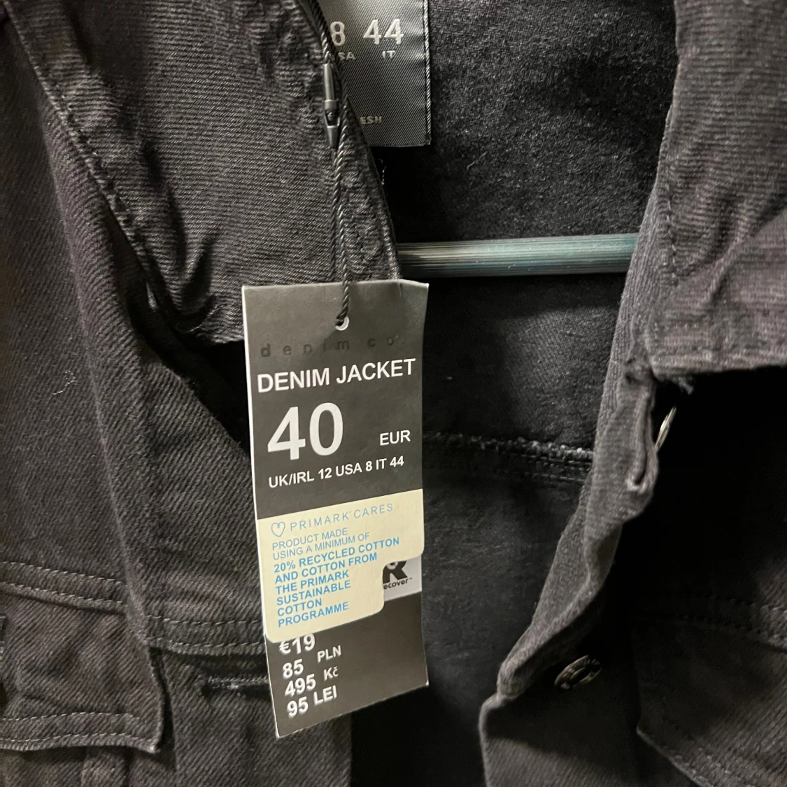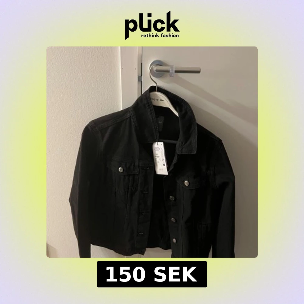 Säljer en svart jeansjacka från Primark i klassisk modell med knappar framtill och två bröstfickor. Jackan är tillverkad av bomull med inslag av återvunnen bomull och har en snygg, tidlös look som passar till det mesta.